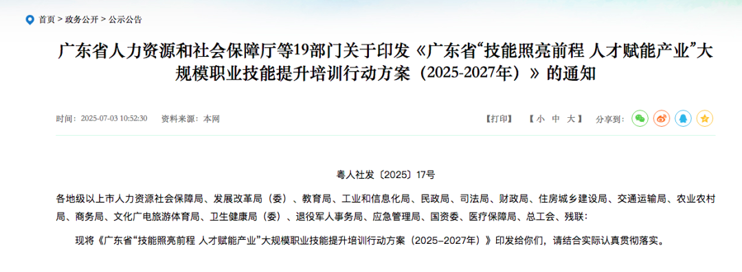 近日,我省出台《广东省“技能照亮前程 人才赋能产业”大规模职业技能提升培训行动方案(2025-2027年)》,聚焦重点群体和重点领域组织开展职业技能提升培训。